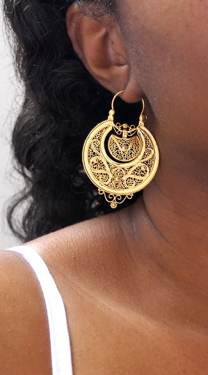 Élevez votre style avec Prestige, une paire de boucles d’oreilles aussi majestueuse que délicate. Inspirée des arts traditionnels du filigrane, cette création aux courbes orientales évoque la grâce, la puissance féminine et la lumière dorée du soleil.