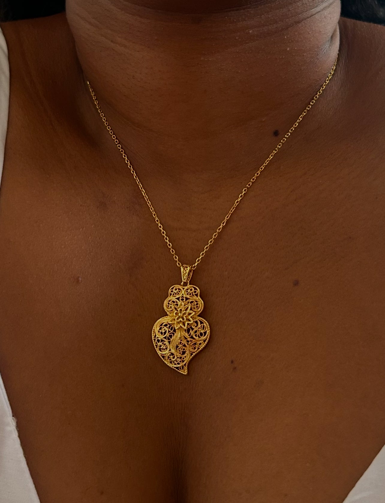 Le Cœur de Viana est bien plus qu’un simple bijou : c’est un symbole ancestral de l’amour, de la dévotion et de la force féminine. Sa forme arrondie, généreuse, parfois ornée de spirales et de volutes, évoque pour beaucoup la forme de l’utérus, ce centre sacré de la création et de la vie chez la femme.